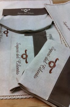 logo ricamato su cappellini, zainetti, strofinacci, asciugamani