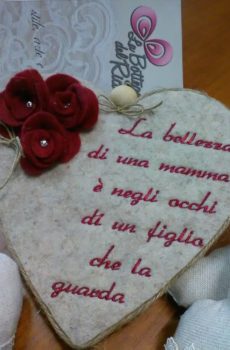 frase ricamata su piccolo cuscino da appendere