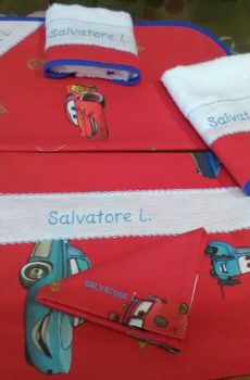 set mensa asilo bavaglino tovaglietta sacchetto tovagliolo astuccio